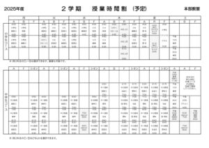 本部教室 2学期時間割